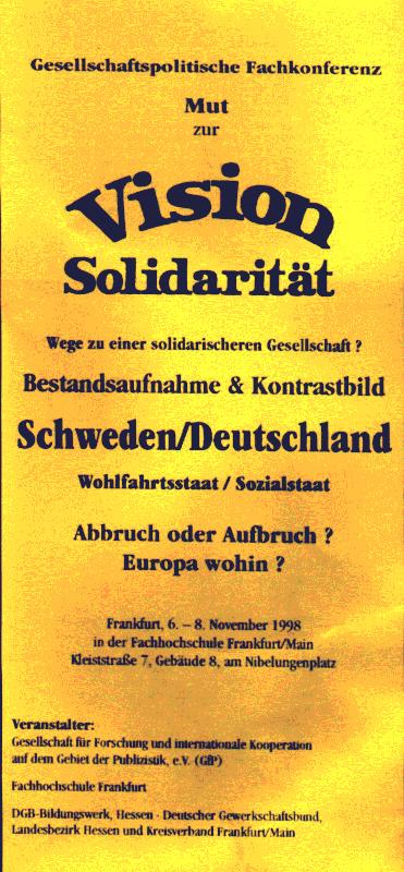 | 18.45 Uhr | Anders Bäckström, Schwedische Botschaft, Bonn: Arbeitsmarktpolitik und Beschäftigung in Schweden. Instrumente, Finanzierung und Ergebnisse bis 1990 und seitdem. Kontrastbild in Deutschland Diskussion |